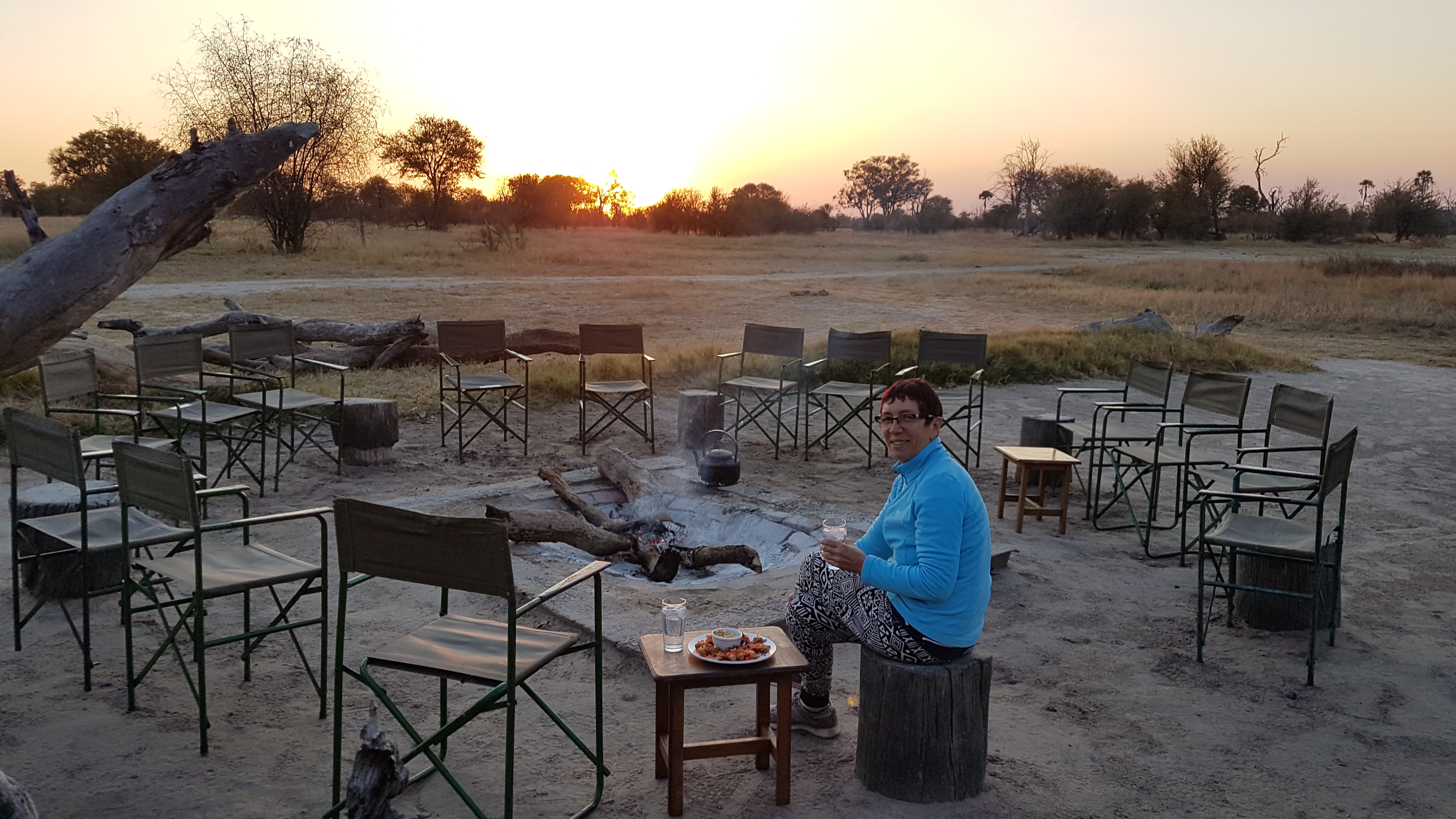 Retour au lodge. Apéro tradition devant le coucher de soleil