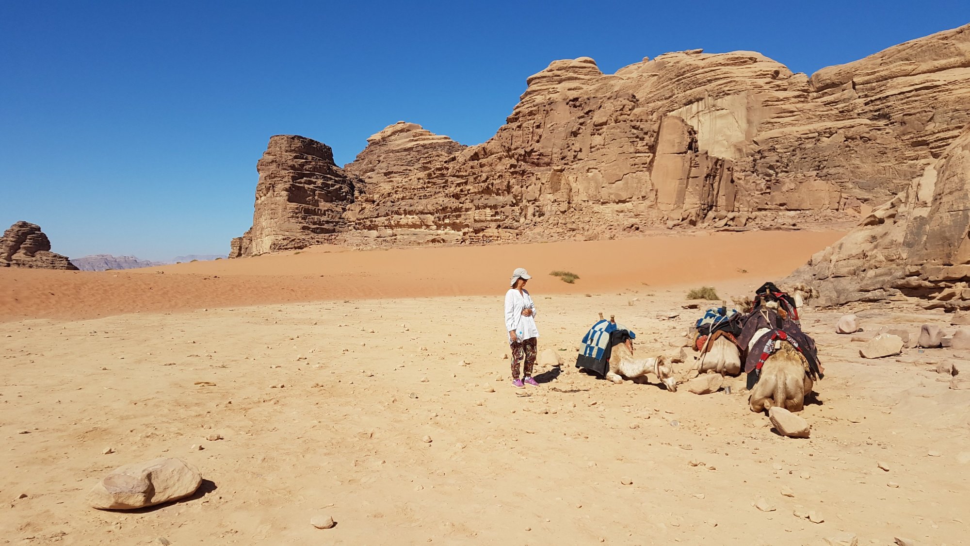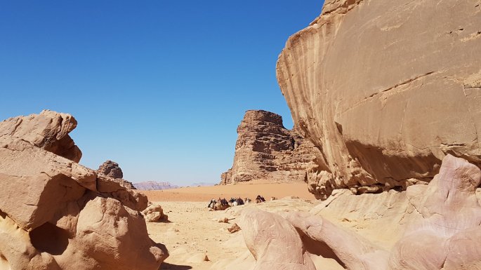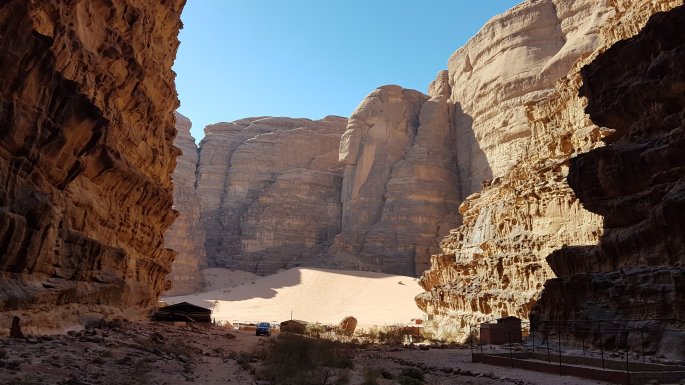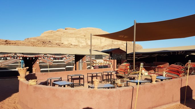 2 jours pour découvrir ce magnifique désert où a beaucoup vécu Lawrence d’Arabie. Un univers uniquement minéral aujourd’hui parcouru en 4 x4, et demain à pied. Nous passons les 2 prochaines nuits dans un camp lodge en toile.