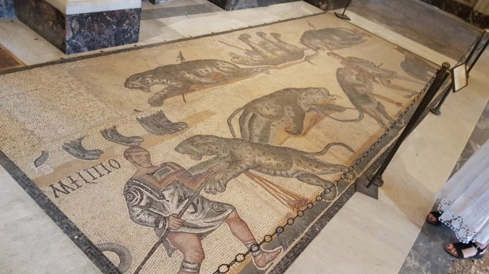 Dans le palais, beaucoup de fresques du 1er siècle, sur le thème des gladiateurs