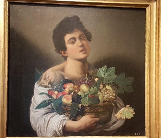 Caravage: Enfant à la corbeille de fruit.