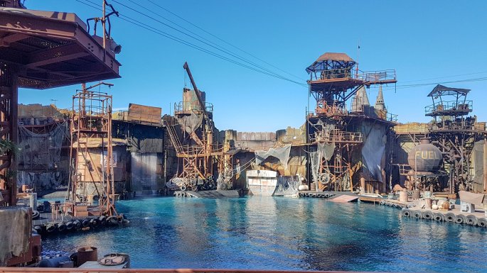 Pour rester dans l’ambiance cinéma propre à Los Angeles nous décidons de faire un tour à Universal Studios qui est à la fois un parc d’attraction sur le thème du cinéma, mais aussi les studios encore en activité. Le plus intéressant est de faire le tour de ces studios où de nombreux décors ont été conservés en l’état. C’est réellement impressionnant et parfois, lors du circuit qui se fait en petit train électrique, vous rentrez dans l’ambiance de films catastrophes, avec sur le trajet des événements qui surviennent comme par exemple un orage violent avec une coulée de boue impressionnante qui dévale vers vous, un tremblement de terre avec des véhicules qui s’écrasent à quelques mètres de vous. Les effets spéciaux ne sont pas seulement des incrustations numériques, mais là le terme hollywodien prend toute sa signification quand au réalisme de ceux ci.