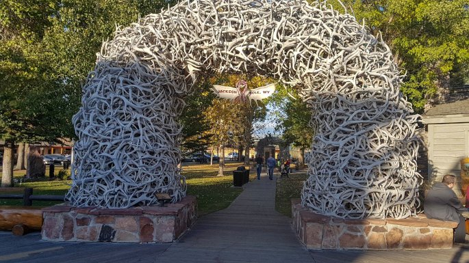 Sur la place de Jackson Home une arche faite avec les bois morts des cervidés.