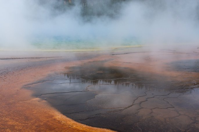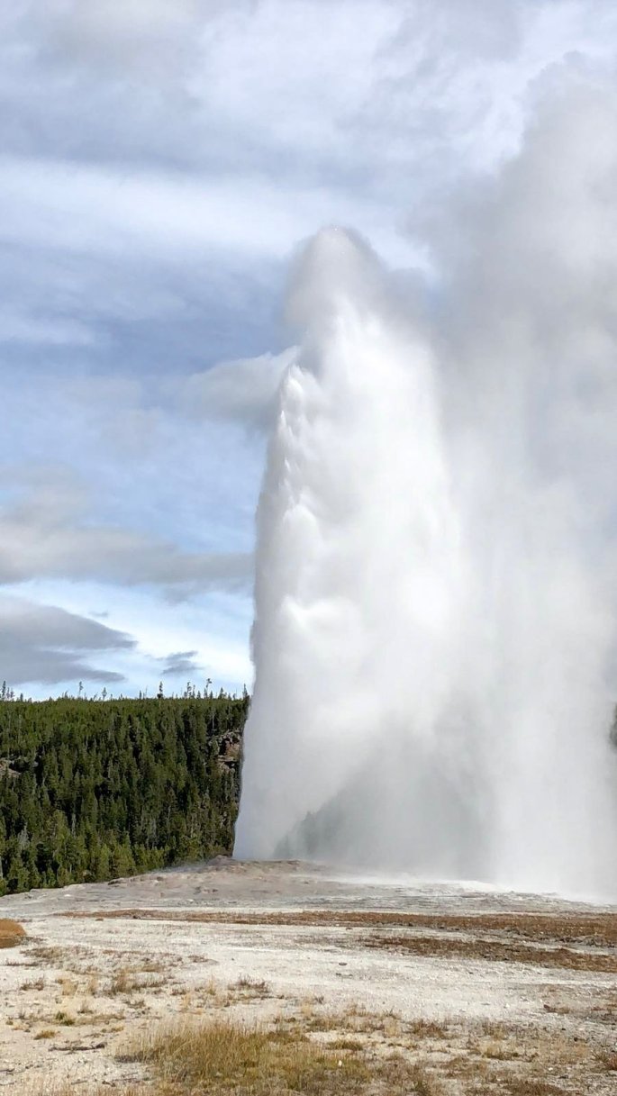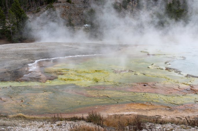 Nous avons réussi à voir l’éruption d’un geyser, en attendant un peu plus d’une heure, mais l’attente vaut le coup d’oeil. Les autorités du parc affichent la probabilité d’éruption à 30 minutes près, mais étant donné le monde, il vaut mieux être présent sur le site avant pour avoir le meilleur point de vue.