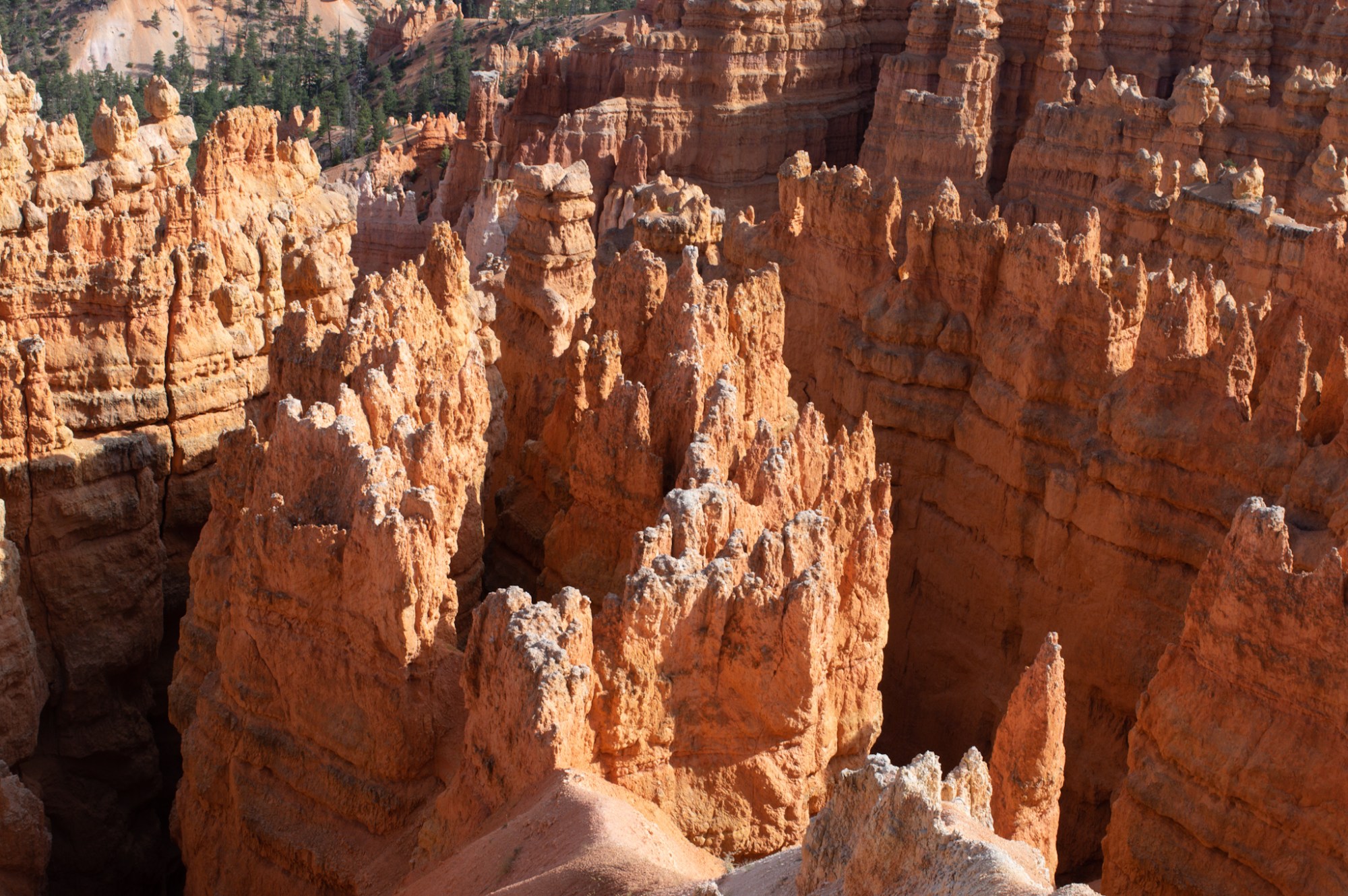 Bryce Canyon est un plateau calcaire à plus de 2000 m d’altitude, ciselé par l’érosion en colonnes de pierre, ou cheminées de fées , avec des teintes exceptionnelles comme les photos suivantes le montre.