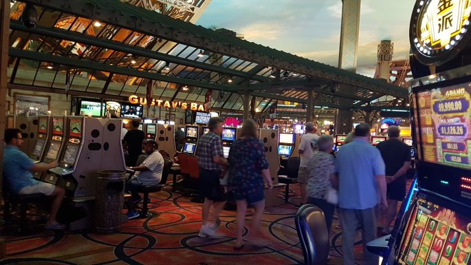 Les hôtels casinos sont construits autour de thèmes précis. Ici c’est Paris . Les ciels en trompe l’oeil font plus vrais que nature.