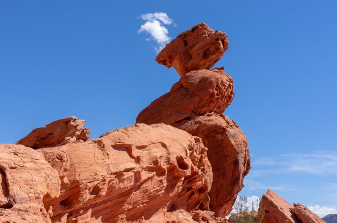 Nous traversons de vastes étendues plates et rocailleuses, bien éloignées des magnifiques paysages d’hier, à l’exception d’un unique relief, la vallée de feu, qui porte bien son nom avec une température de 50 degré C.