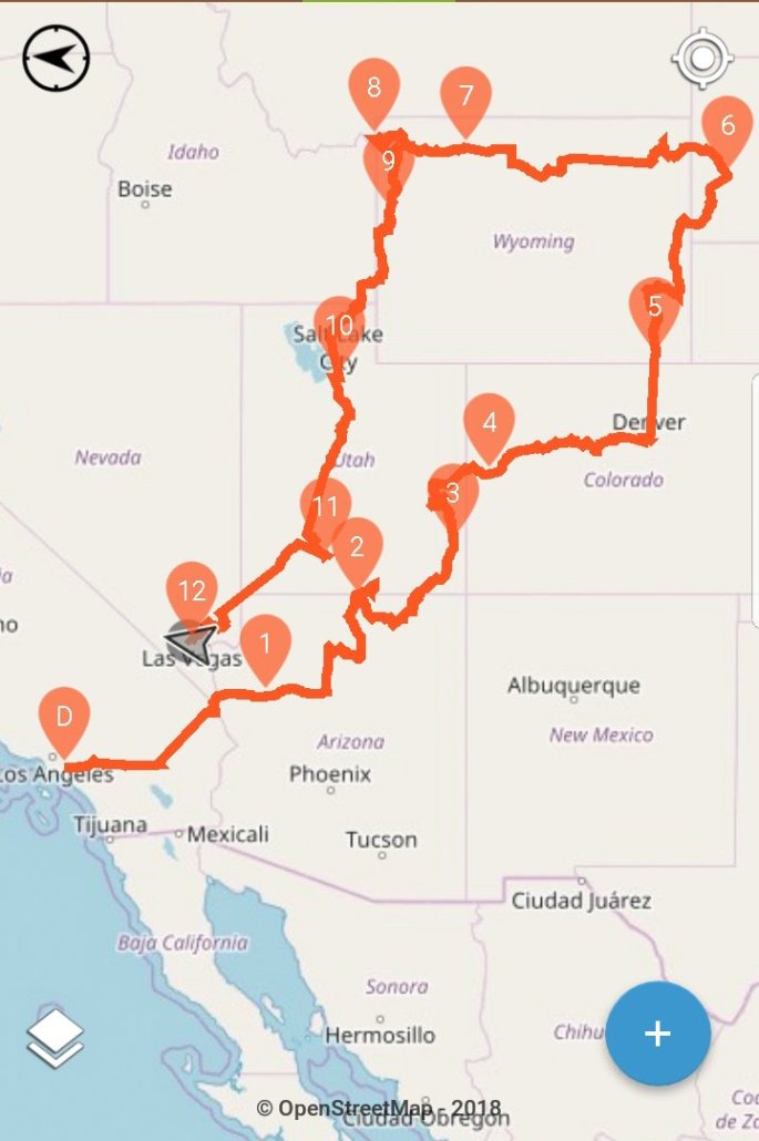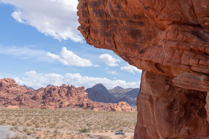 La route nous fait passer des paysages de canyons, aux paysages du désert du Nevada, avec des températures nettement en hausse et des altitudes plus basses.