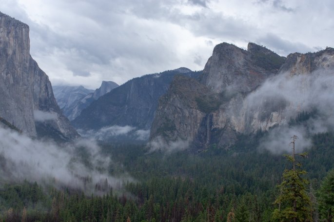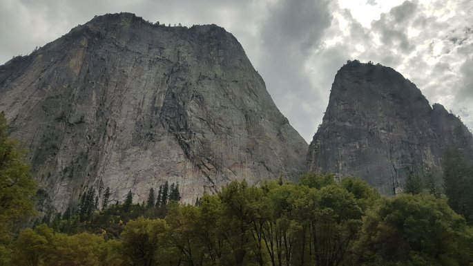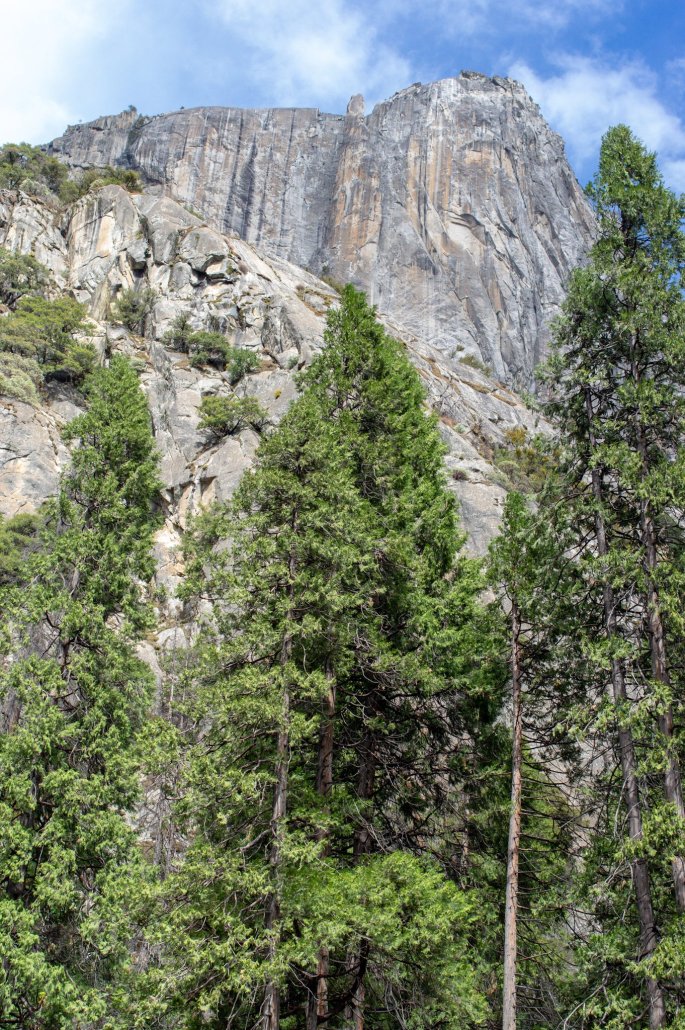 La journée commence sous la grisaille et la pluie, mais le temps s’améliore vers midi ce qui nous permet de nous promener sur quelques sentiers du parc en profitant des vues splendides sur les massifs granitiques gigantesques et au milieu d’une forêt de pins et de séquoias géants. Malheureusement en cette fin d’été nous ne pouvons pas profiter des cascades qui font aussi la réputation du lieu en dehors de périodes de sécheresses.