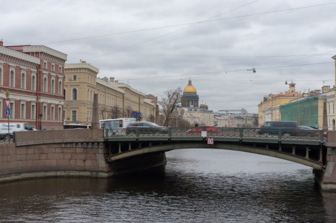 Vue sur la cathédrale saint Isaac à partir du pont des baisers.