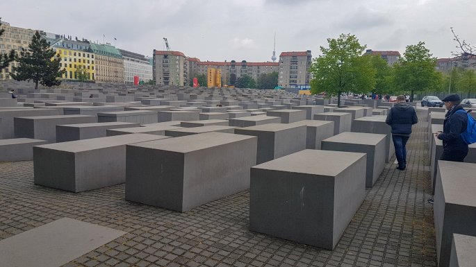 La visite continue par 3 monuments commémoratifs avec principalement le monument comemoratif de la shoa qui dégage un sentiment d’oppression quand on se retrouve au milieu de cet espace de blocs de bétons.
