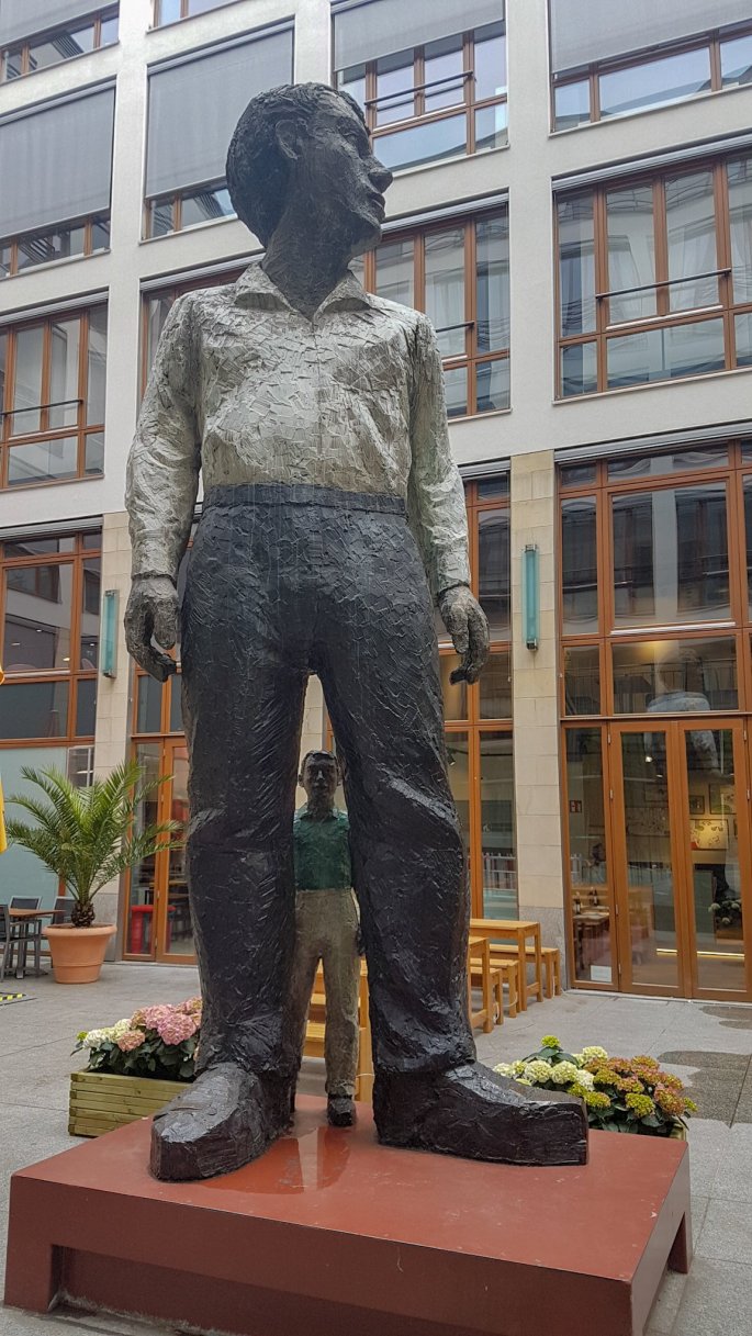 Beaucoup de sculptures modernes dans le quartier, dont cet homme de Berlin dont le regard porte vers… L’ouest.