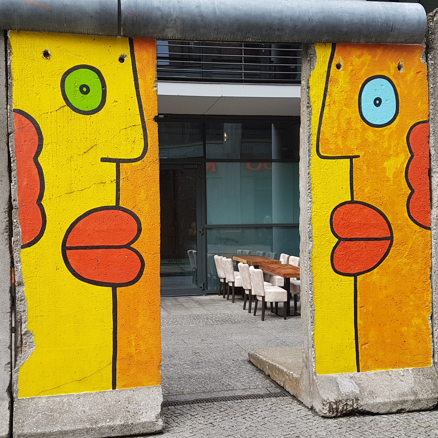 On trouve à différents endroits de la place des vestiges du mur, certain complètement graffités après la chute du mur, et d’autres couverts de chewing-gum par les habitants de Berlin ouest en signe de protestation.