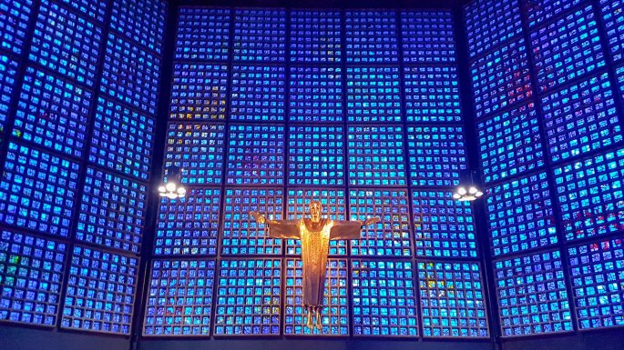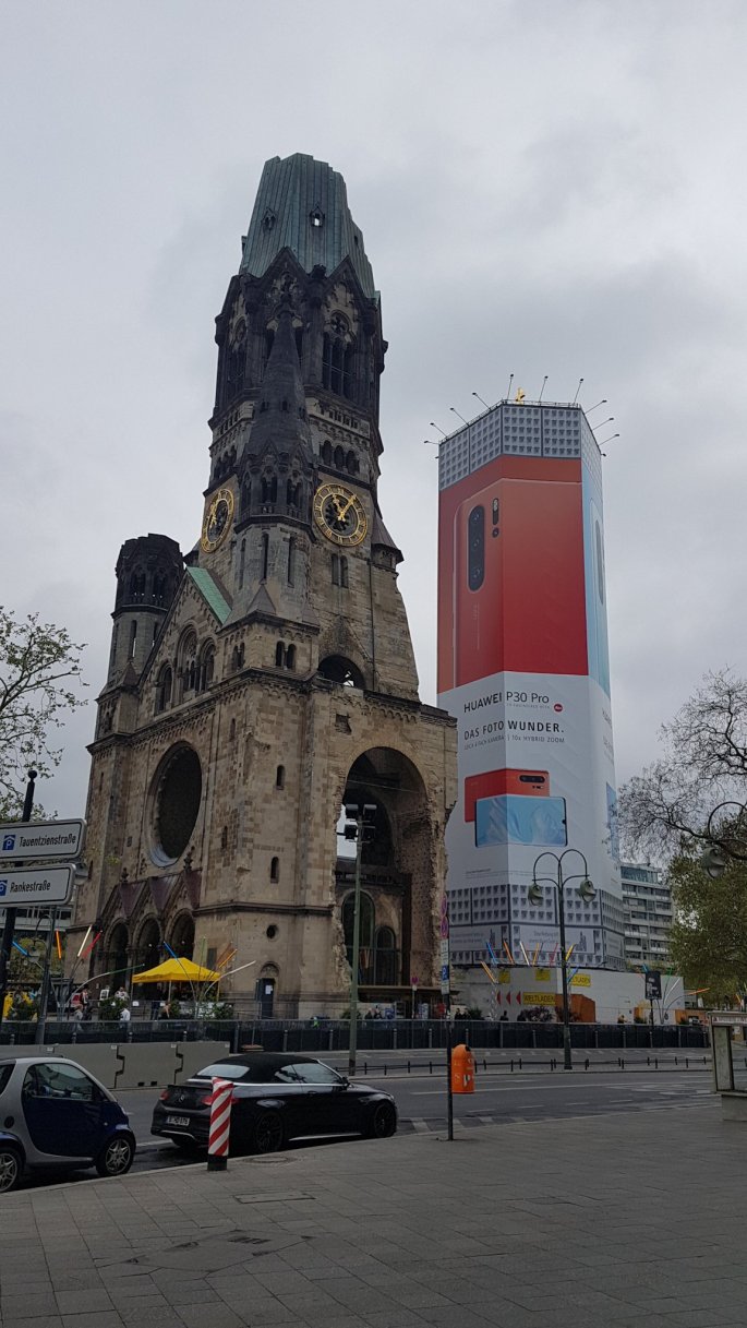Nous visitons l’église du souvenir du kaiser Willhem. C’est une église qui a été très abîmée en 1943, et non restaurée en souvenir des destructions causée lors de la guerre.