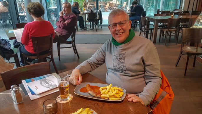 Petite pause pour goûter à la spécialité berlinoise curry wurst. Ca se laisse manger mais on n’en ferait pas son ordinaire.