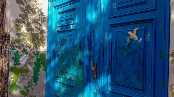 Parfois ce peut être plus sobre comme cette porte bleue avec un oiseau