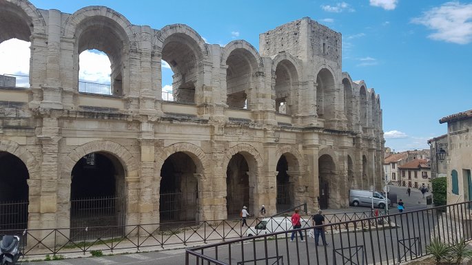 Le 26 mai est une journée consacrée au trajet, avec une petite halte en cours de route à Arles où nous faisons un arrêt café près des arènes.