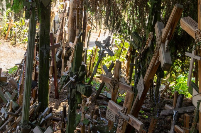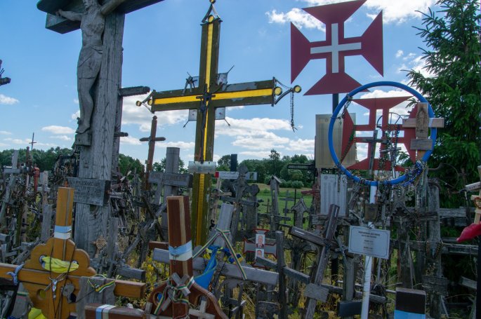 Après avoir traversé la frontière entre la Lettonie et Lituanie, notre prochain arrêt est pour le site de la Colline des Croix c’est un lieu de pèlerinage situé près de la ville de Siauliai, au nord de la Lituanie.Les premières croix ont été posées sur la colline au XIVe siècle.Au cours du temps, de nombreuses croix, des crucifix, sculptures de patriotes lituaniens, des statues de la Vierge Marie, des effigies en étain et des rosaires y ont été apportés par les pèlerins catholiques.