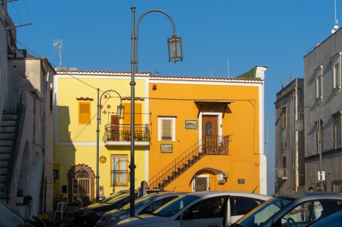 Un des ports de Procida et ses maisons colorées