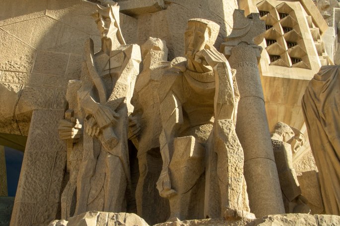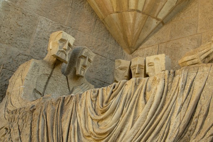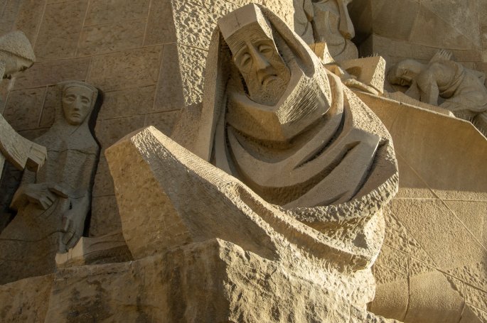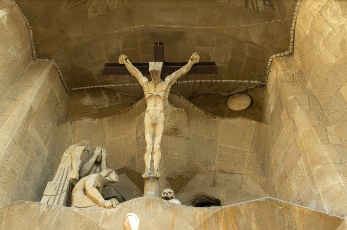 L’autre façade consacrée à la passion du christ que Gaudí voulait très dramatique, est d’une facture plus épurée, plus comtemporaine. La façade est illustrée par le récit de la Passion
