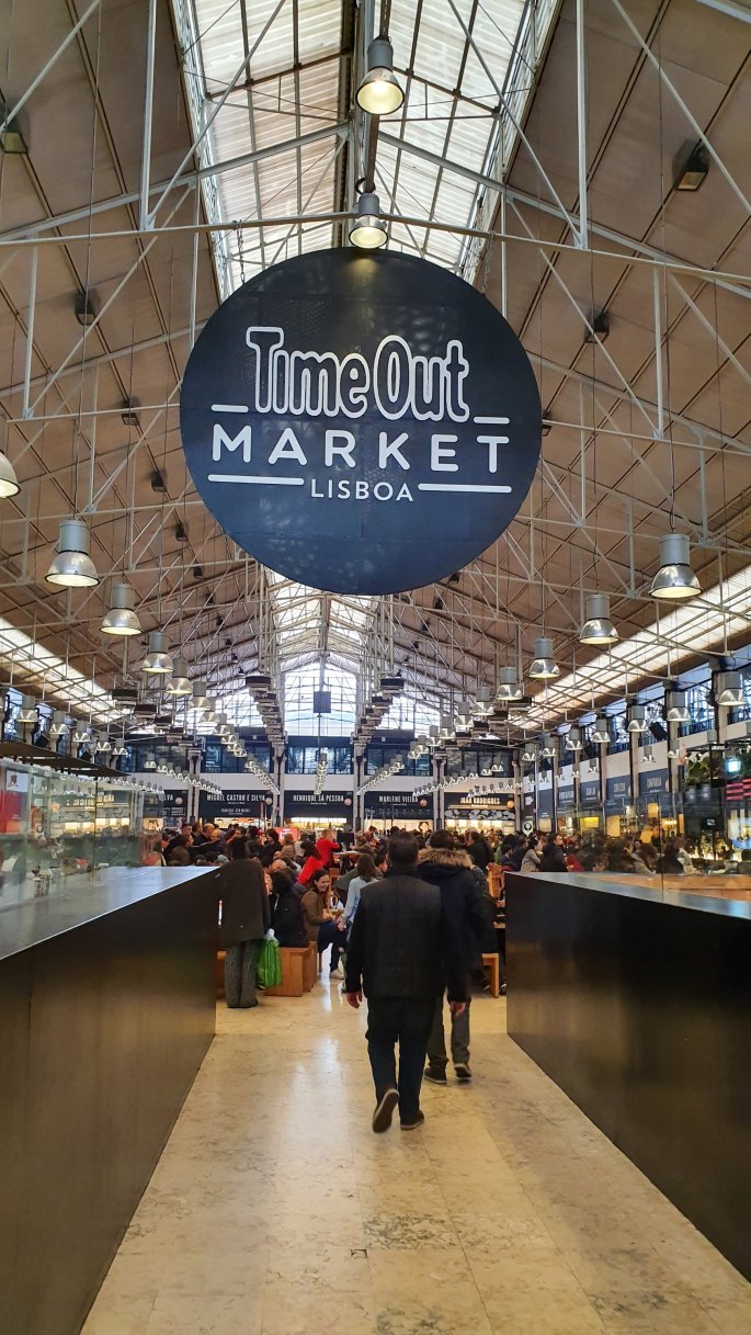 Time out Market. Ce marché en plein lisbonne est en fait une successions de petites échoppes de restauration, où après avoir commandé, les gens s’installent aux tables de la partie centrale, pour manger.