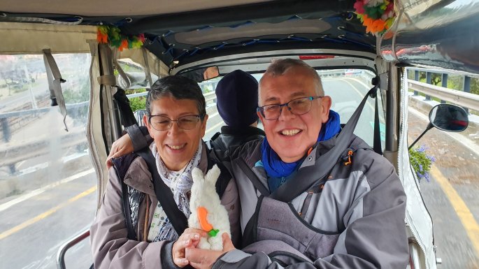 C’est parti pour le tuk tuk. Il y en a un qui n’en perd pas une miette.
