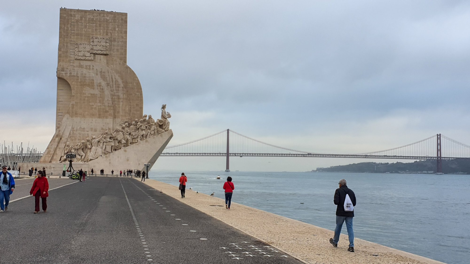 Le monument aux découvertes avec en fond le pont de Lisbonne qui enjambe Le Tage.
