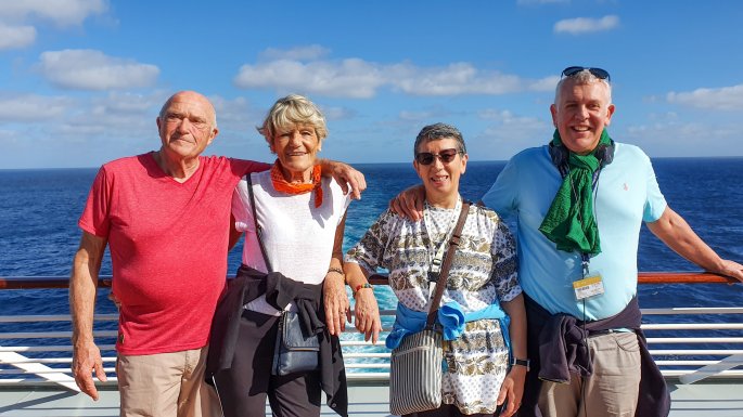 Au cours d’une promenade sur le pont, photo avec Anne Marie et Jean Louis.