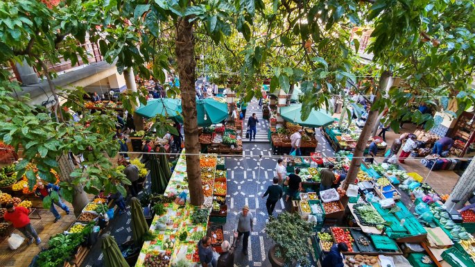 Nous visitons le magnifique marché dos lavradores, où les marchands de fruits n’ont pas leur pareil pour solliciter le touriste.