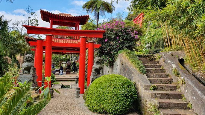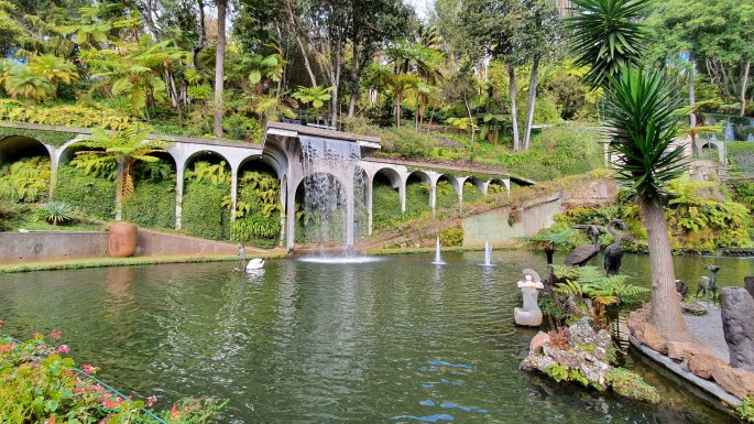 Puis nous montons sur les hauteurs de Funchal en téléphérique pour visiter le Jardin tropical Monte Palace.