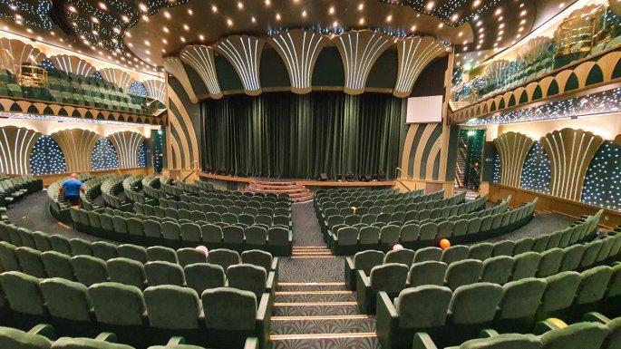 Avant le dîner, nous pouvons assister chaque soir dans la salle de théâtre à de magnifiques spectacles variés (plus de 100 spectacles différents sont prévus). C’est assez époustouflant en terme de qualité.