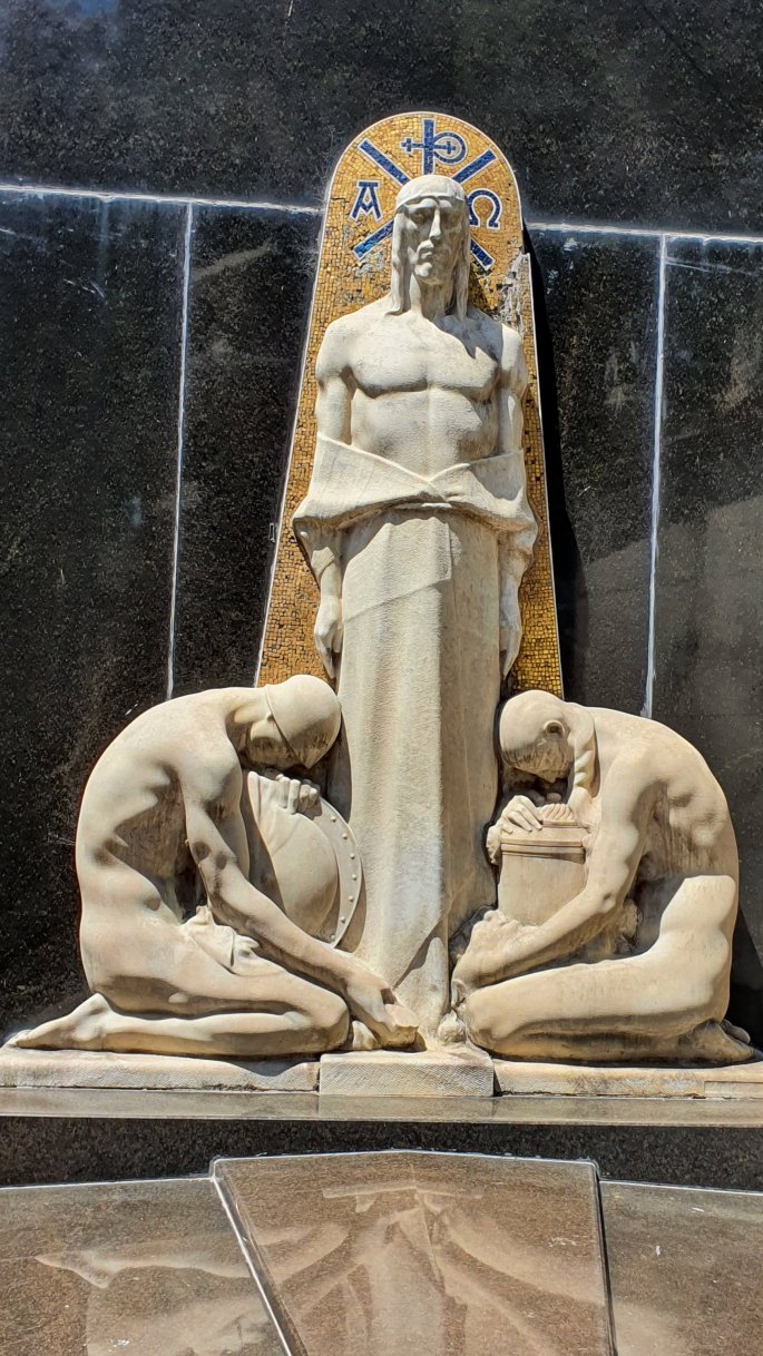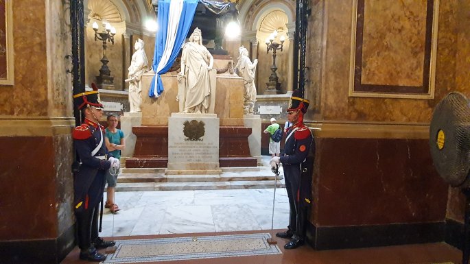 Dans la cathédrale deux soldats veillent le tombeau du libérateur de l’Argentine José de San Martin.