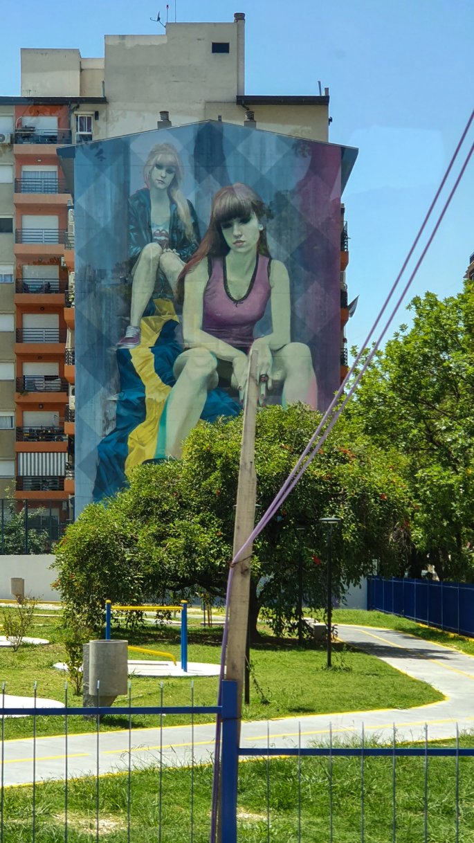Magnifique peinture murale géante sur un immeuble HLM proche de la Boca.
