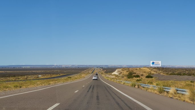 Nous empruntons la panaméricaine, et nous roulons pendant 80 kms sur une route rectiligne dans un paysage de toundra à perte de vue.