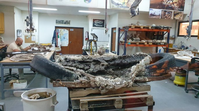 Au sein du musée, il y a un laboratoire où sont étudiés les fossiles trouvés dans la région et qui servent aux reconstitutions et aux moulages