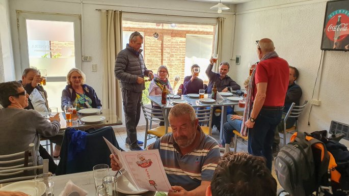 Pause déjeuner pour notre petit groupe dans un café pizzeria.