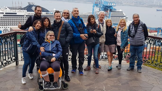 Aujourd’hui nous formons un groupe de 12 personnes, pour visiter Valparaiso à pied (+ métro, + funiculaire), accompagnés par deux guides, Christian et Aurélie, passionnés par leur ville, et donc passionnants pour nous tous.
