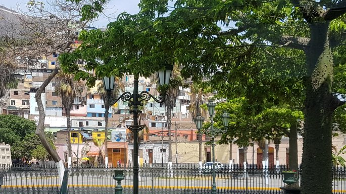 Sur la photo ci-dessous, on aperçoit le quartier du Rimac, qui s’est créé de façon très anarchique.