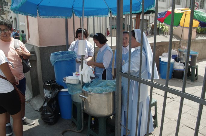 À la sortie de l’église des sœurs vendent quelque chose qui ressemble à du fromage frais.