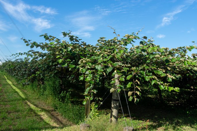 Les kiwis poussent en grosses grappes à l’abri du feuillage. Le volume de fruits produit par un arbre est impressionnant.