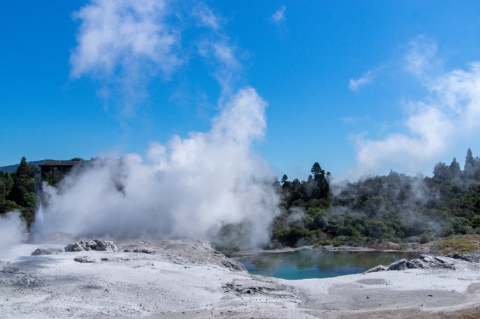 Le site géothermique était proche d’un village Maori. Aujourd’hui on y présente quelques reconstitutions de bateaux, de maisons typiques.