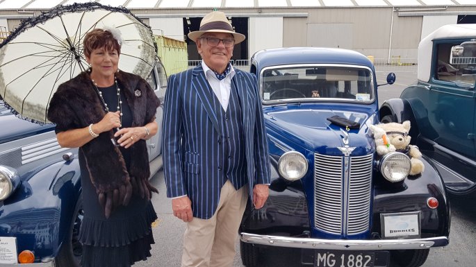 Près du port, un club d’amateurs de vieilles voitures exposent leurs belles calandres. Lapinou qui n’a pas voulu se montrer lors de la descente en raft, s’est trouvé un copain ours.