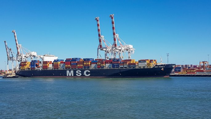 De l’autre côté du port, tout est aussi à l’arrêt et des portes containers attendent d’être déchargés.