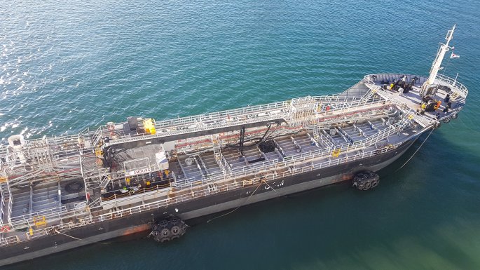 Nous sommes ravitaillés en fuel à partir de cette barge.