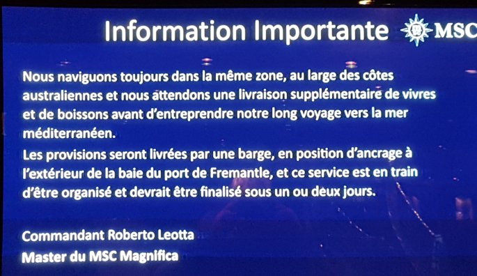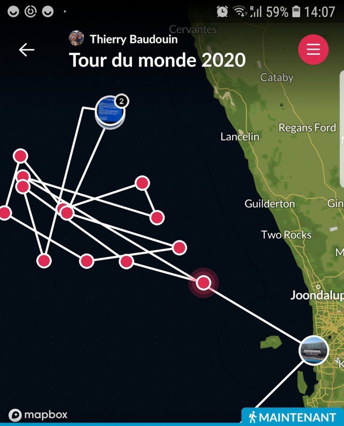 Nous refaisons route immédiatement vers Fremantle, où nous sommes autorisés, le 27 mars au soir, à nous mettre à l’ancre à bonne distance du rivage (plus que le mètre réglementaire conseillé par l’OMS).
