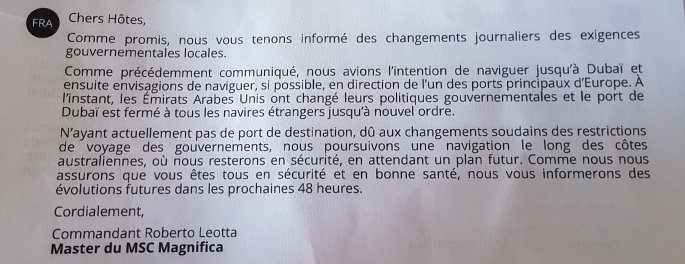 Les quelques incertitudes sont bien comprises par quasiment tous les passagers (Il y a toujours quelques individus, qui ont des meilleures idées que notre commandant, le seul problème est qu’ils ne sont (heureusement) pas le commandant.
