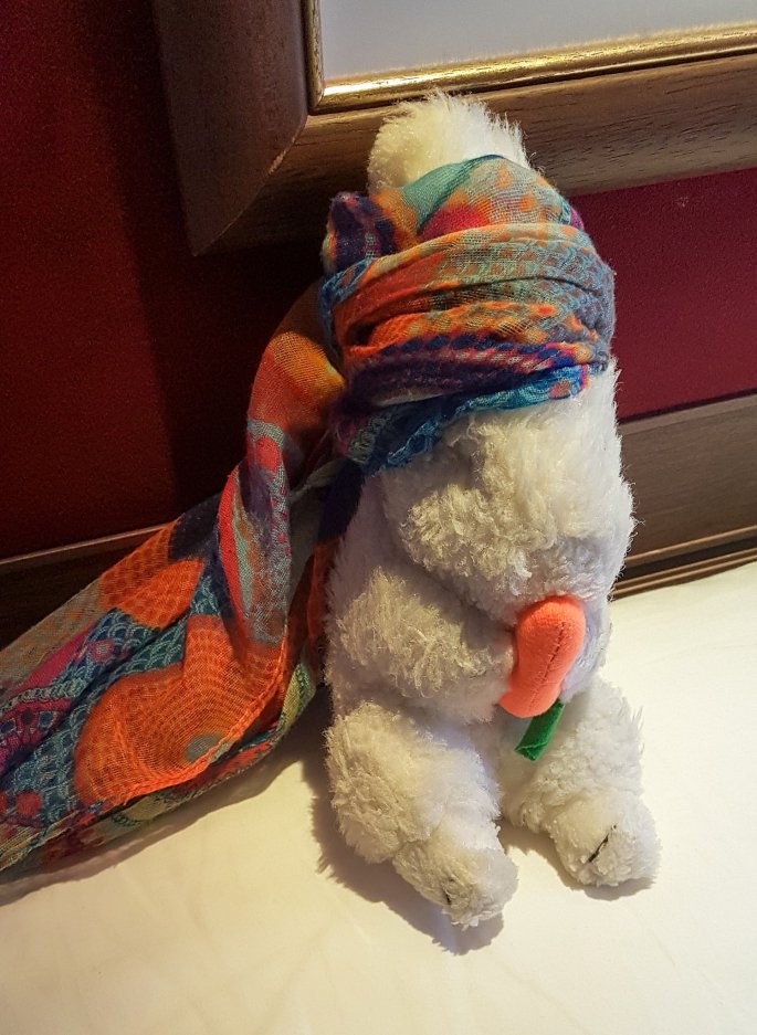 Au final nous n’avons eu qu’une seule alerte au niveau de notre cabine, quand lapinou a décidé de jouer le pirate. Il ne nous a pas impressionné vraiment avec sa carotte.