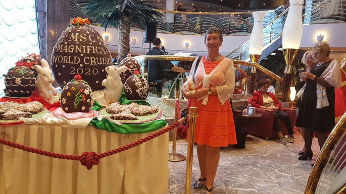 Le bateau était décoré dans les thèmes de Pâques , avec en plus des traditionnels œufs en chocolat, beaucoup de lapins, ce qui prouve que les superstitions liées à l’évocation d’un lapin sur un bateau ne sont que l’apanage de la marine à voile.
