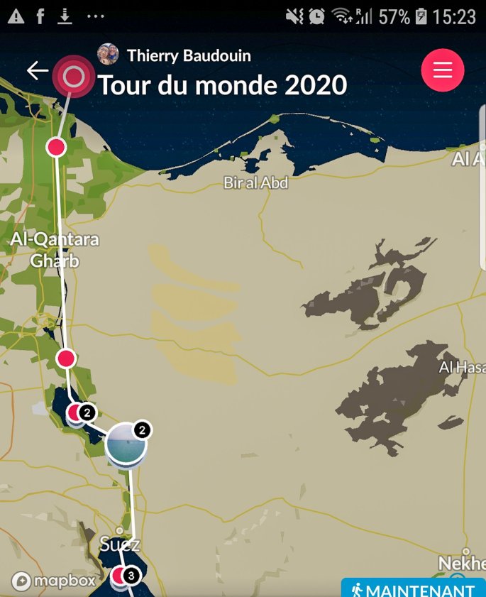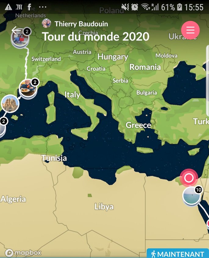 Maintenant que nous sommes en méditerranée, vous voyez sur la carte ci-dessus le chemin qu’il nous reste à parcourir pour regagner Marseille et boucler notre tour du monde atypique.