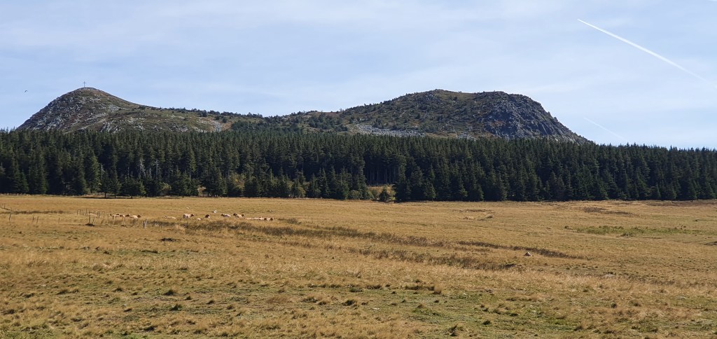 Autre vue sur le mont Mezenc (À gauche). On donne sur le côté hauts plateaux du massif, plus dénudé.