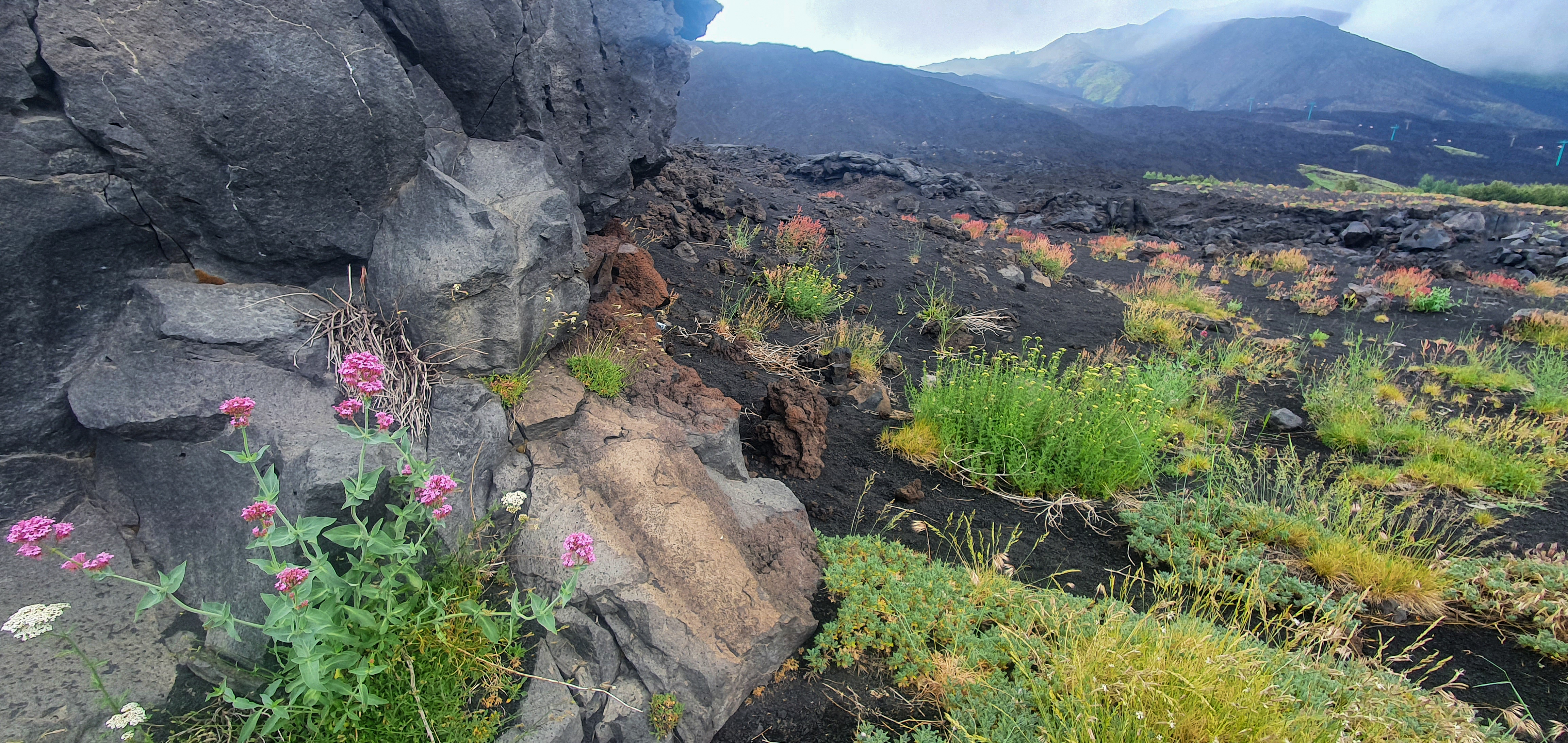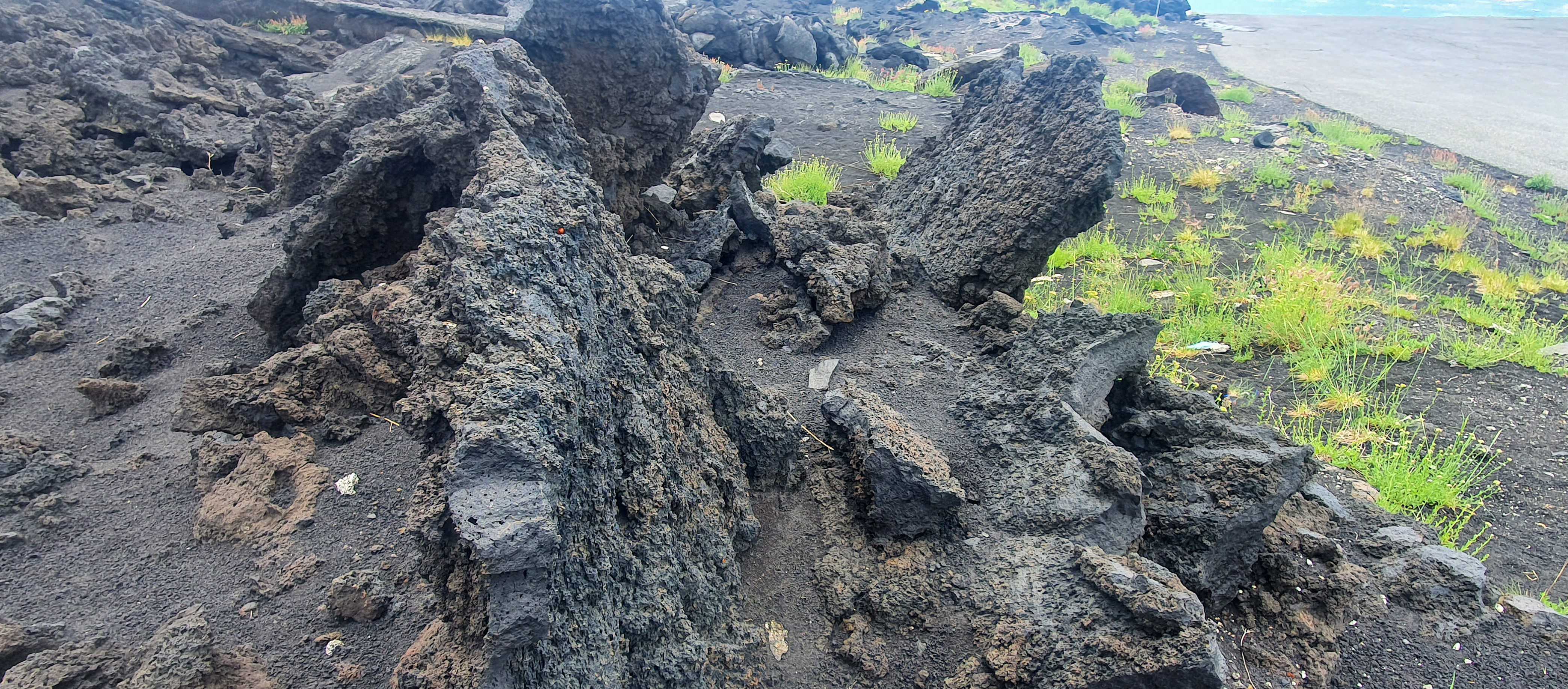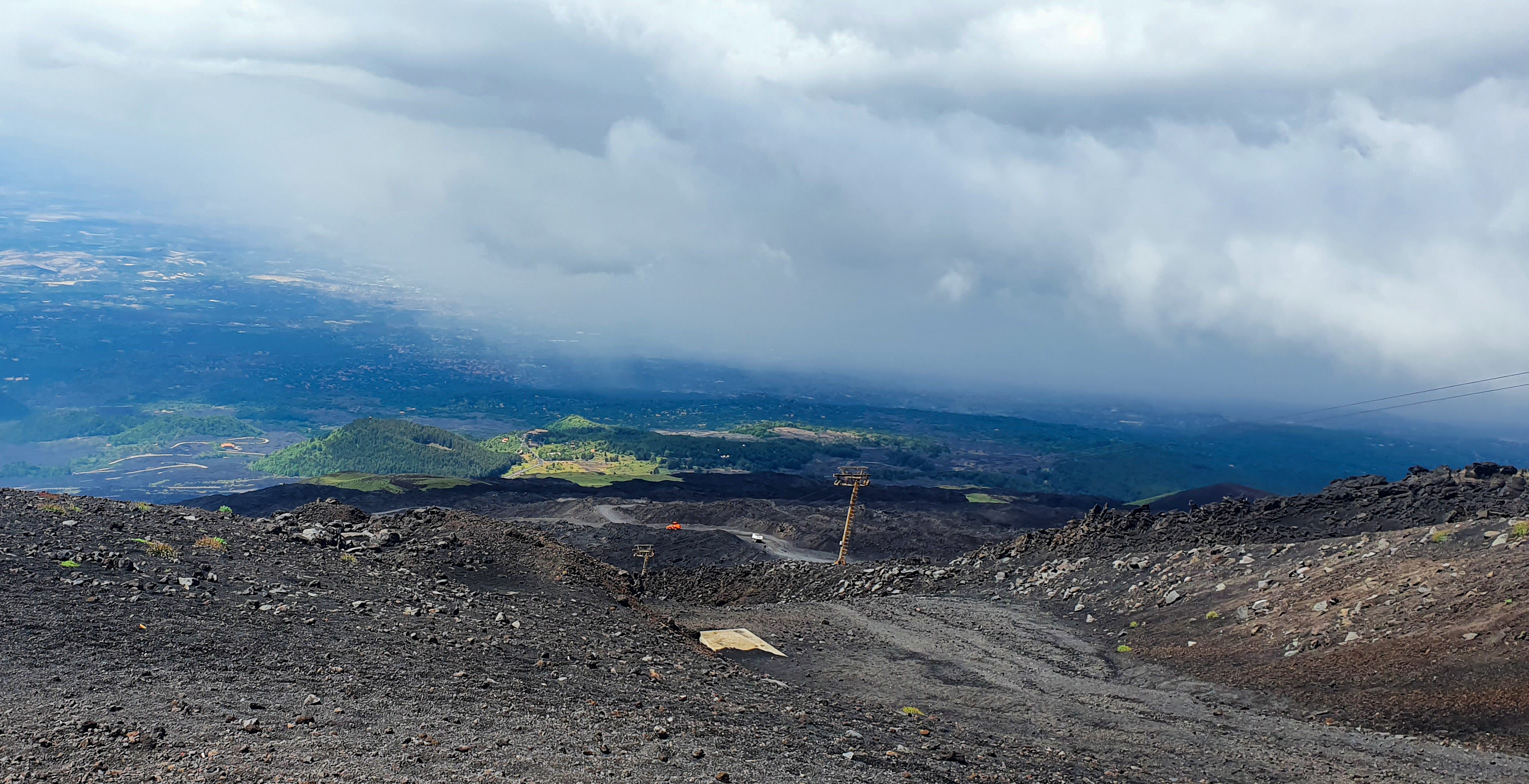 Ce matin départ pour l’Etna… Avec une petite pointe d’inquiétude: Après 5 jours d’un ciel bleu immaculé, on a quelques nuages au niveau de la mer, et de notre hôtel, la vue sur l’Etna est dans le brouillard.